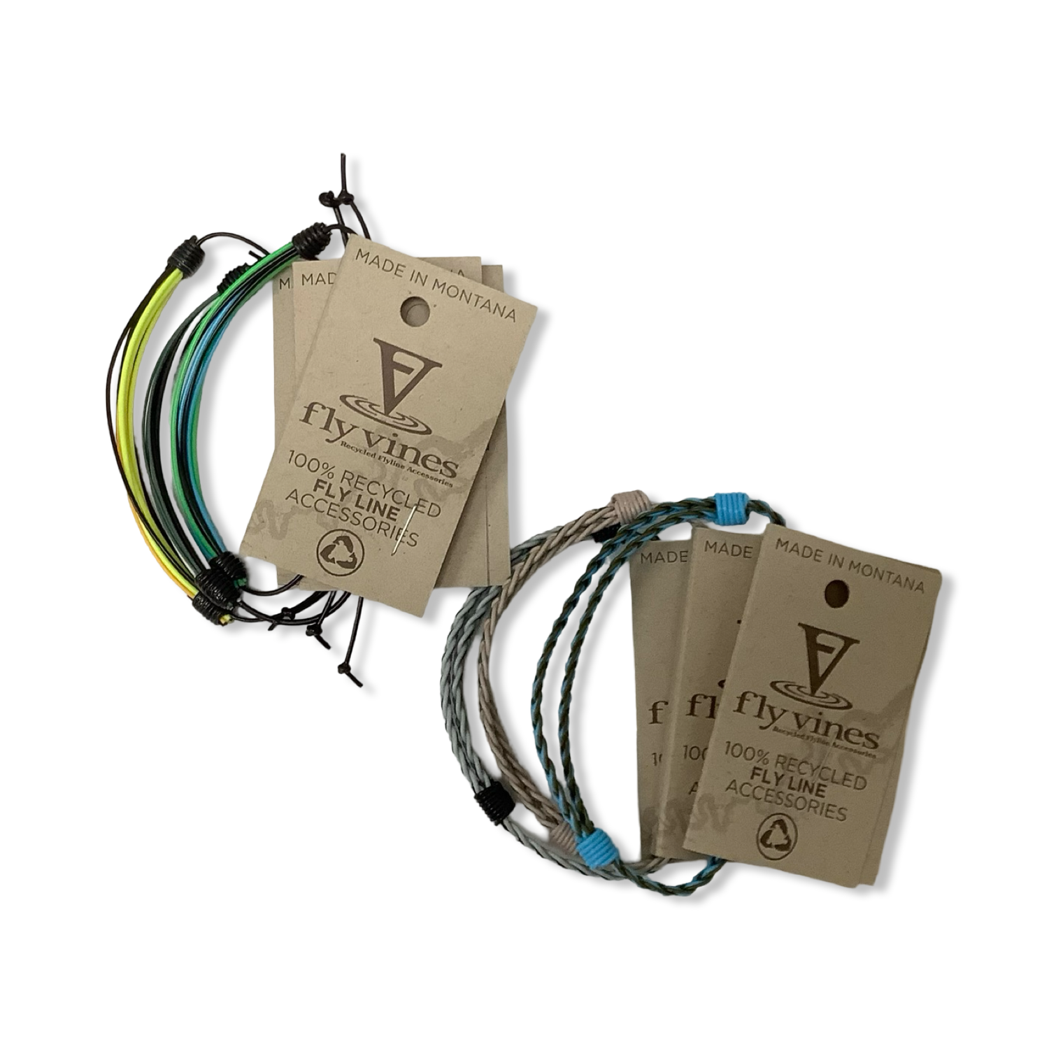 Add some fun to your accessories with this Flyvines bracelet. Handcrafted by stay-at-home moms in Missoula, Montana, this unique piece is made from repurposed fly fishing line. Each bracelet is a testament to sustainability and artisanship, making it the perfect addition to your collection.