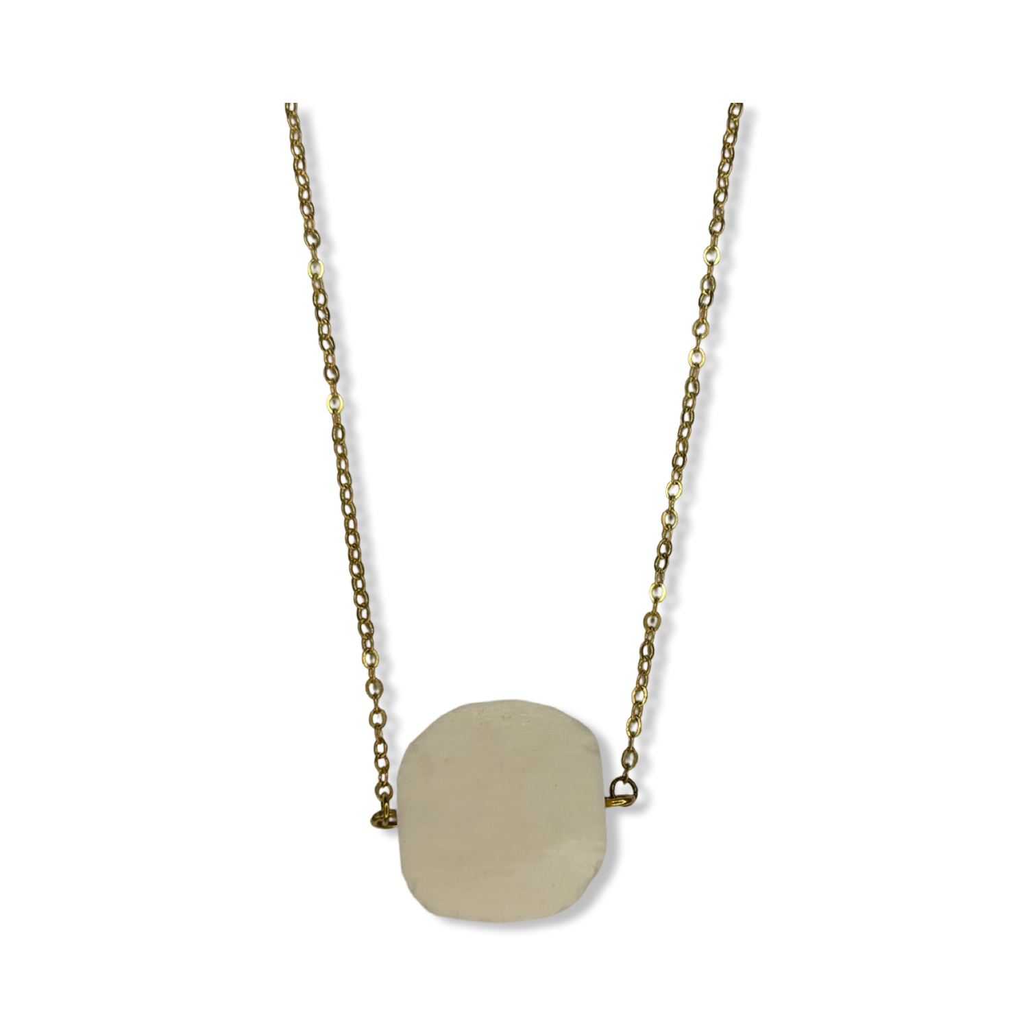 Expertly crafted in Montana, the Compass Necklace by Commonform boasts a 1" white bone bead on a 16" brass chain. Each bead is unique, adding an individual touch to this handcrafted piece. Navigate through life in style with this one-of-a-kind necklace.