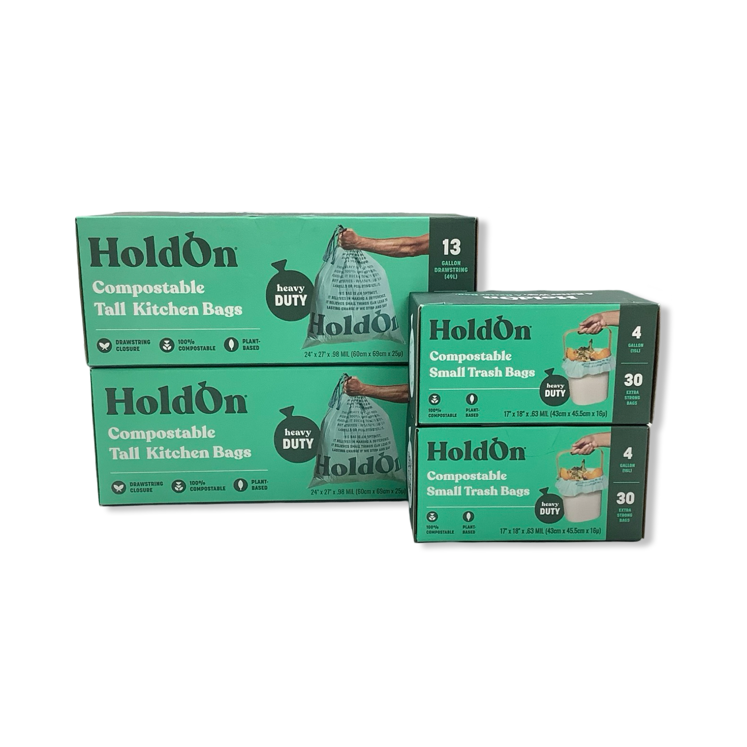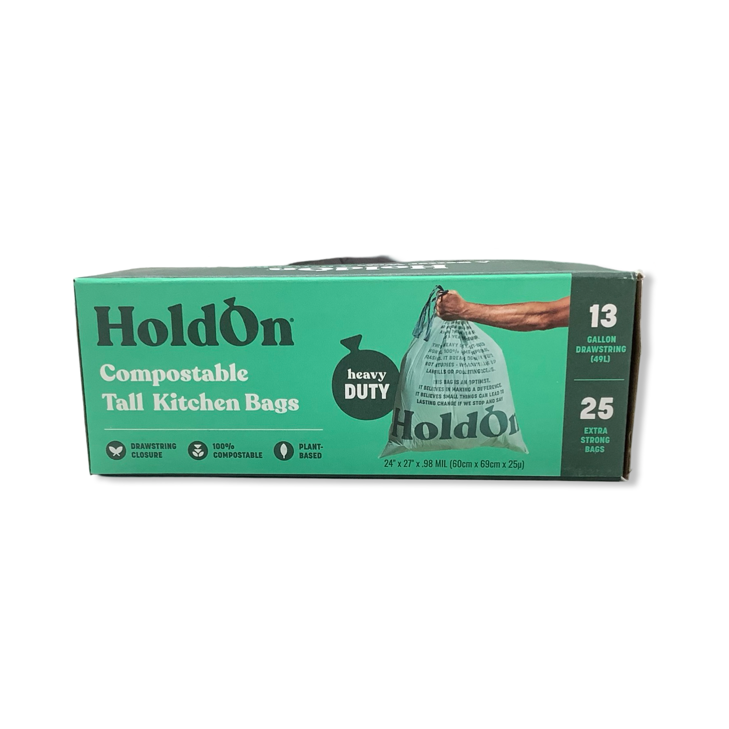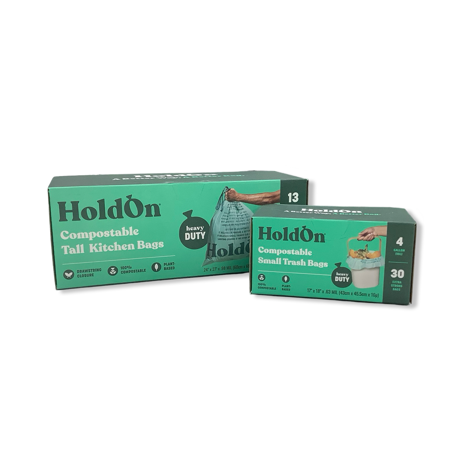 These HoldOn compostable trash bags are made from environmentally friendly materials and can be easily disposed of along with organic waste. Perfect for reducing your carbon footprint and promoting sustainability in your home or business. Say goodbye to harmful plastic and hello to a greener future with HoldOn Bags.