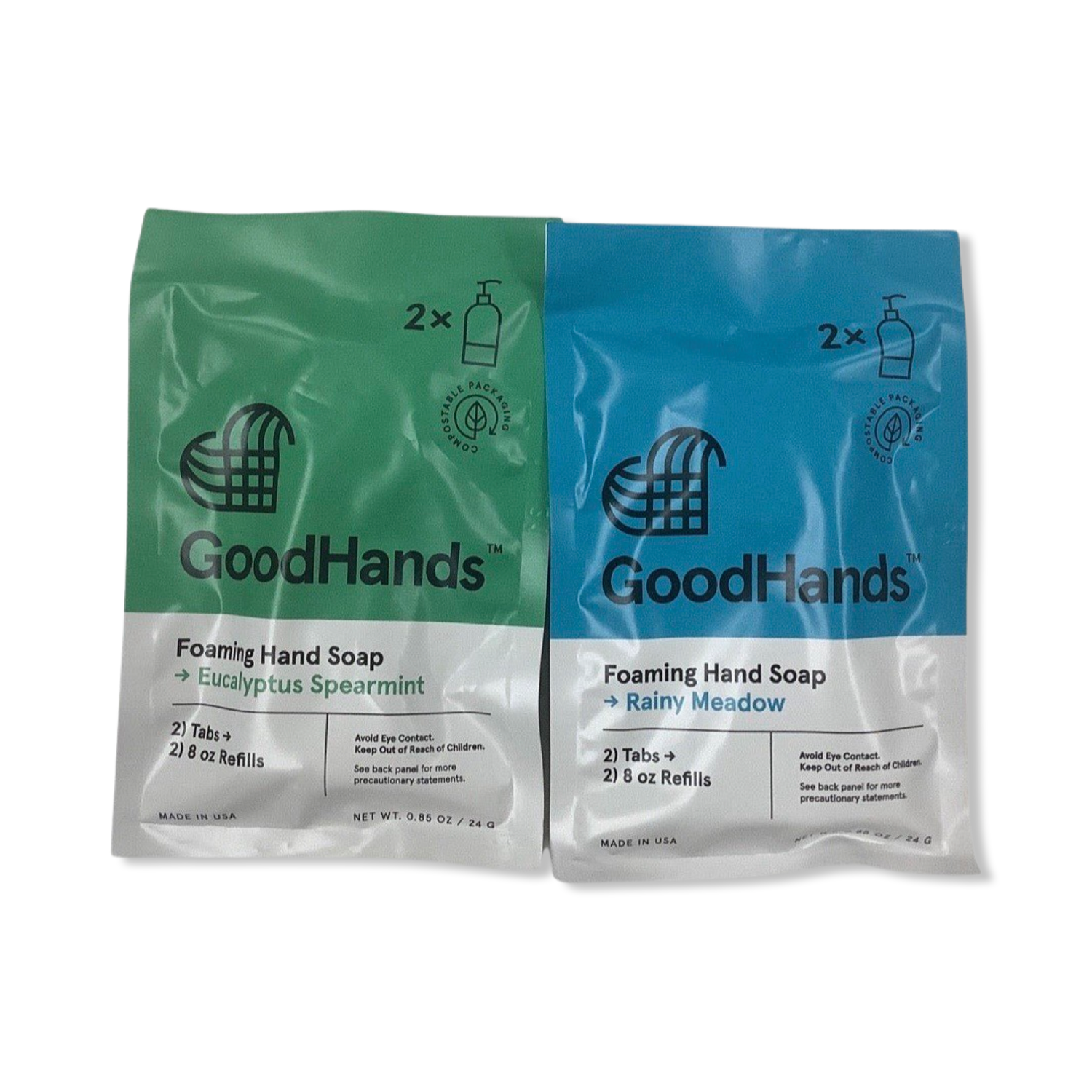 GoodHands Foaming Handsoap Tabs offer a zero-waste, environment-friendly alternative to traditional liquid soap packaging. Featuring two dissolvable tablets per pack, each tablet yields 8oz of foaming hand soap, with the packaging itself being compostable. Reduce your plastic waste by using whatever container you prefer for refills.