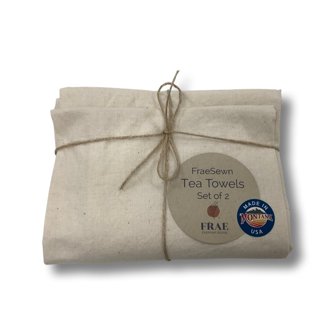 Our FraeSewn tea towel measures 18x26 is made from scratch in our workshop under the beautiful blue skies of Billings, MT - USA...
