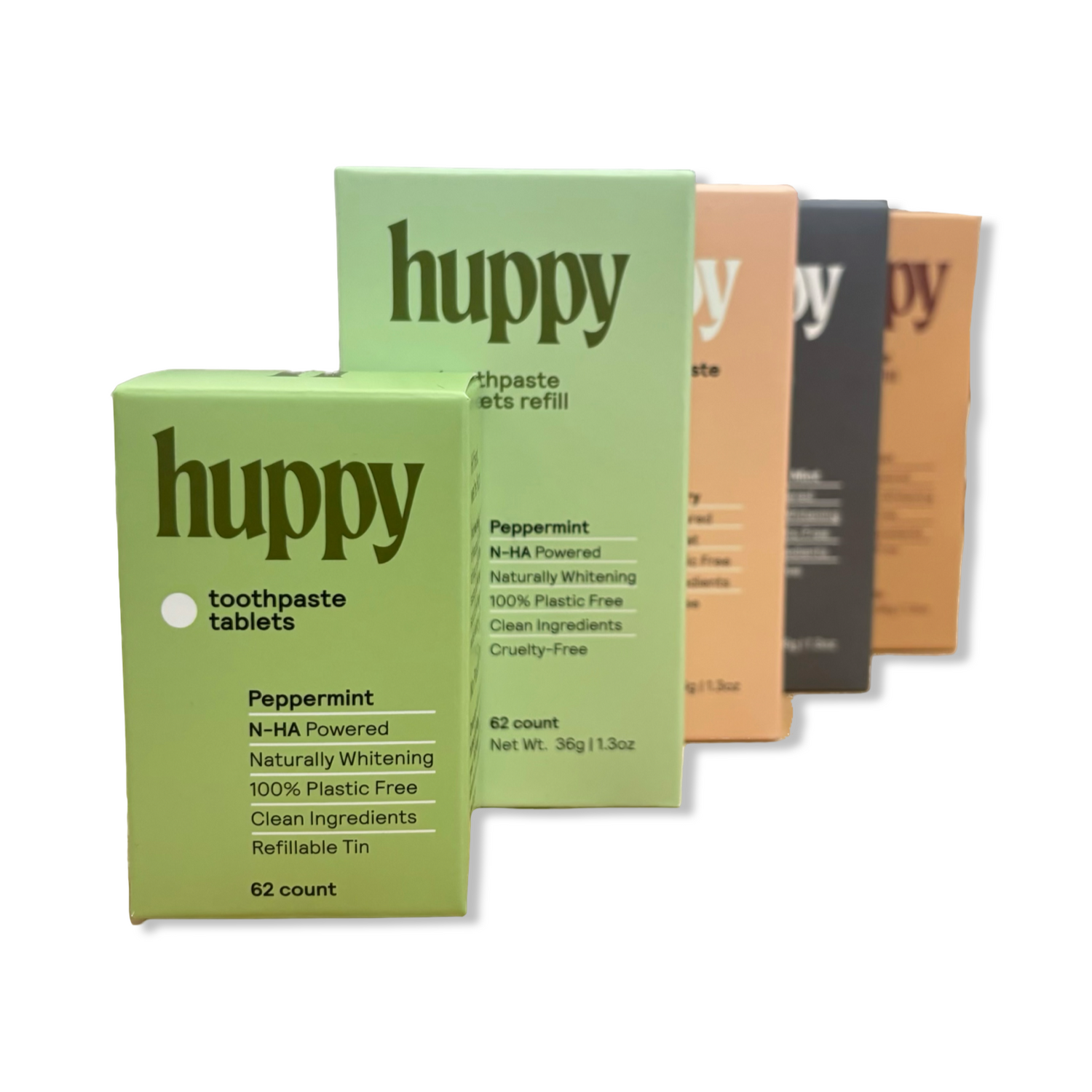 Huppy's Packaged Toothpaste Tabs make brushing your teeth quick and easy. Simply chew and wet your toothbrush for an instant clean. With no mess, no waste, and no fuss, Huppy's toothpaste tabs make the perfect addition to your daily routine.