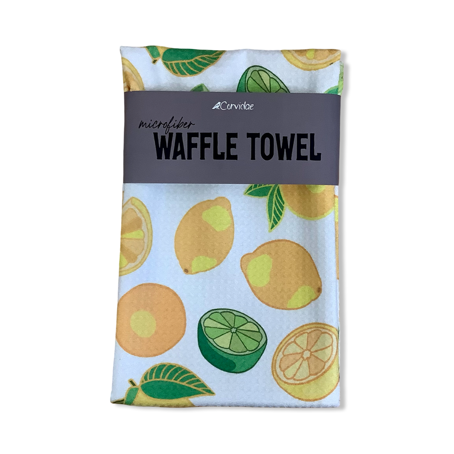 This Microfiber Waffle Kitchen Towel, it's bound to help you everyday through your daily routines! Fast drying and super absorbent and a great addition to your kitchen towel lineup. It holds up to 7x it's weight in liquids. It's also made from 100% post-consumer goods. Details: 18"x30" | hanging loop in corner | 80% recycled polyester/20% recycled polyamide | Machine Washable, tumble dry.
