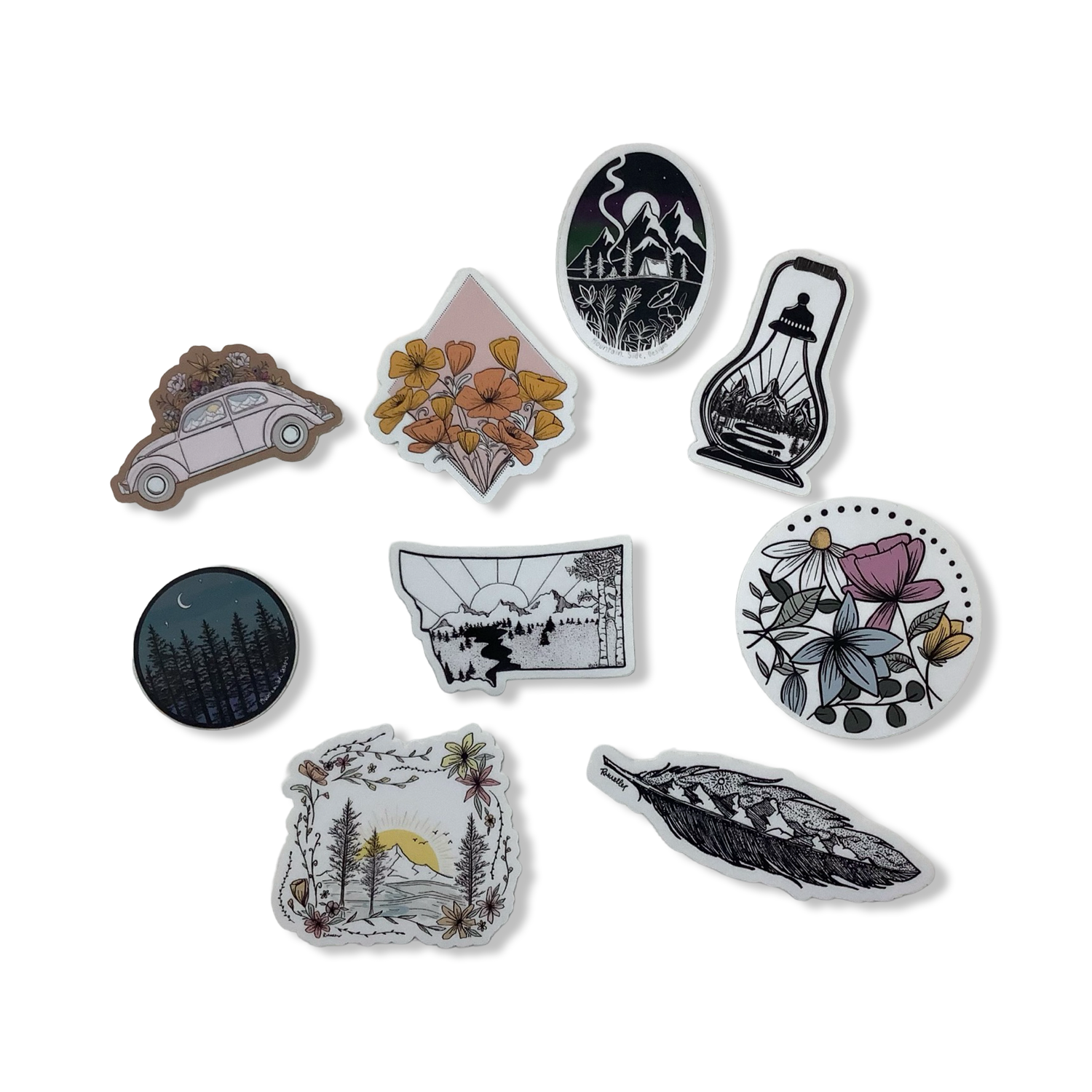 Add a touch of charm to your belongings with these cute and fun Mountainside Design stickers. Perfect for adding a playful personality to anything you like - from notebooks to laptops. Let your creativity shine!