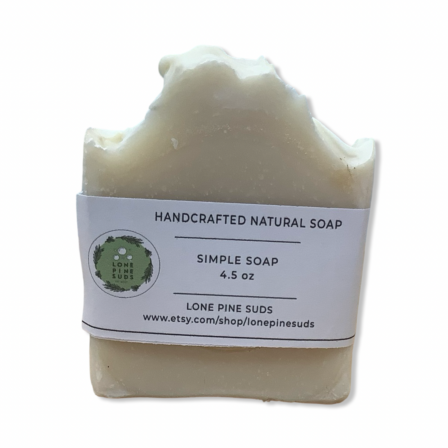 Simple Soap (Vegan): Oil (coconut, castor, avocado, palm, shea butter) sodium hydroxide, distilled water, kaolin clay