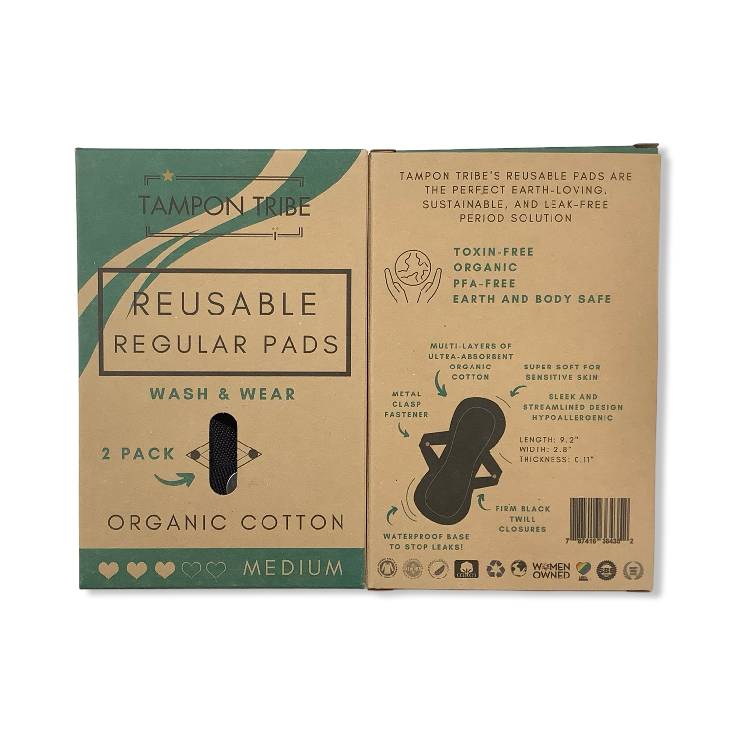Reusable pads are the ultimate environmentally friendly alternative to standard disposables, with no 'bulky' feeling. 2 pack of Wash & wear regular pads. 3-layer protection with soft organic cotton and odor control keeps things discreet. Super absorbent layer and patented leak-free gravity edges. V-shaped straps hold everything in place. Sleek and streamlined design. Plastic-free.