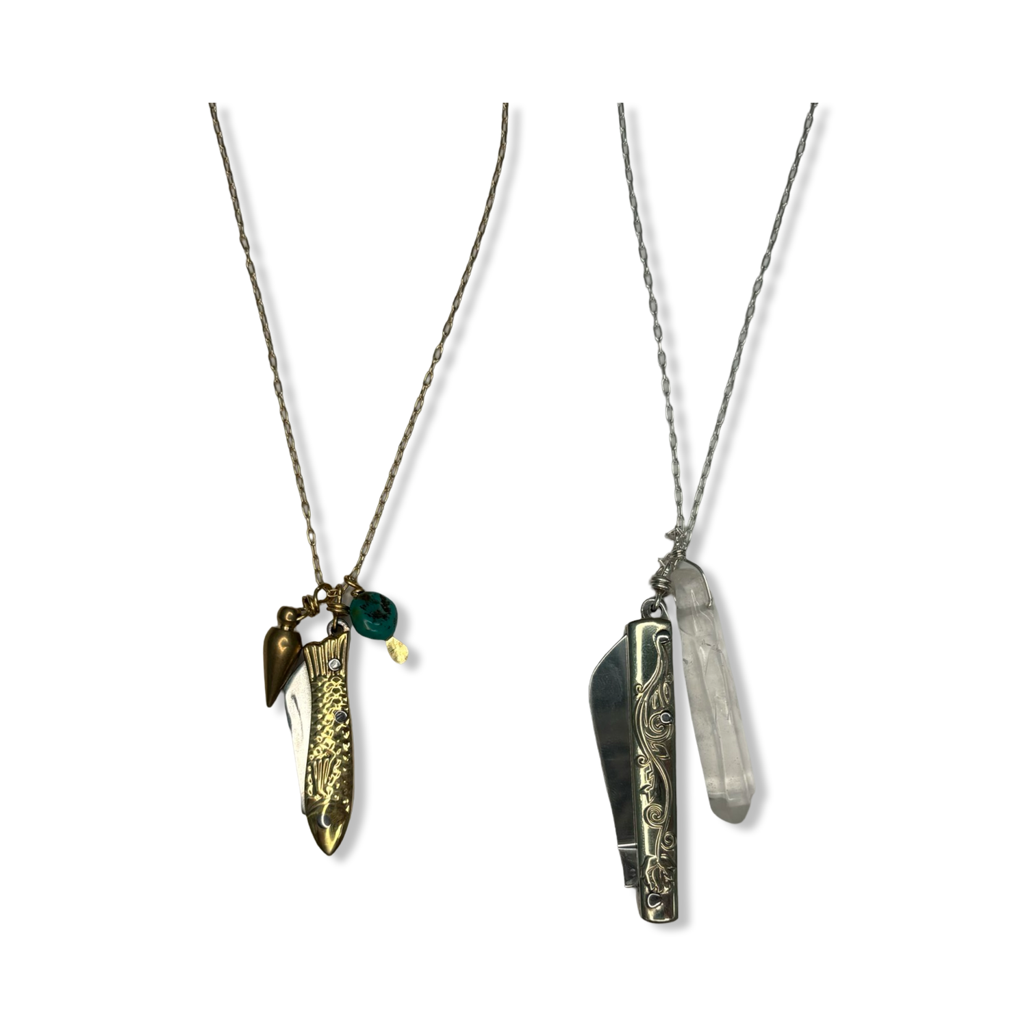 Enhance your style with these unique Pocket Knife Necklaces from Fluff Hardware. Crafted with a playful design, these earrings add a touch of edginess to any outfit. Made with durable materials, they are perfect for everyday wear and make a perfect gift for any adventurer.