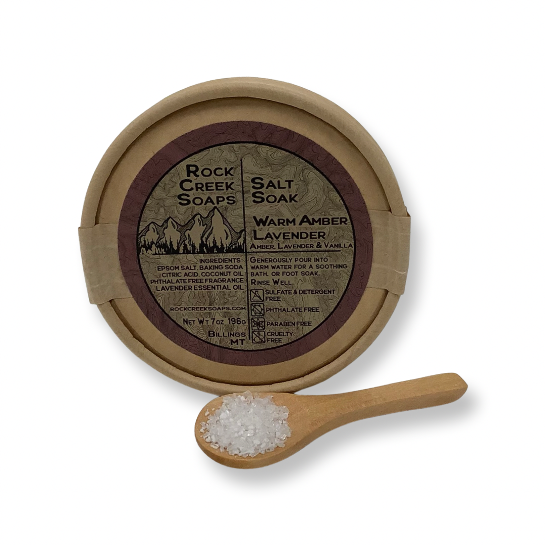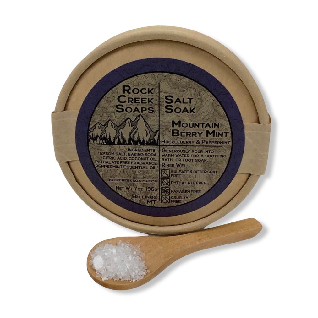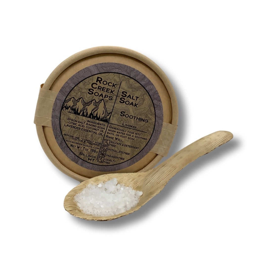 Soothe muscles and relax with Rock Creek Soaps' Salt Soak. Made with Epsom salt and coconut oil, it helps to reduce inflammation and muscle soreness. A perfect addition to your home spa or for regular health maintenance.