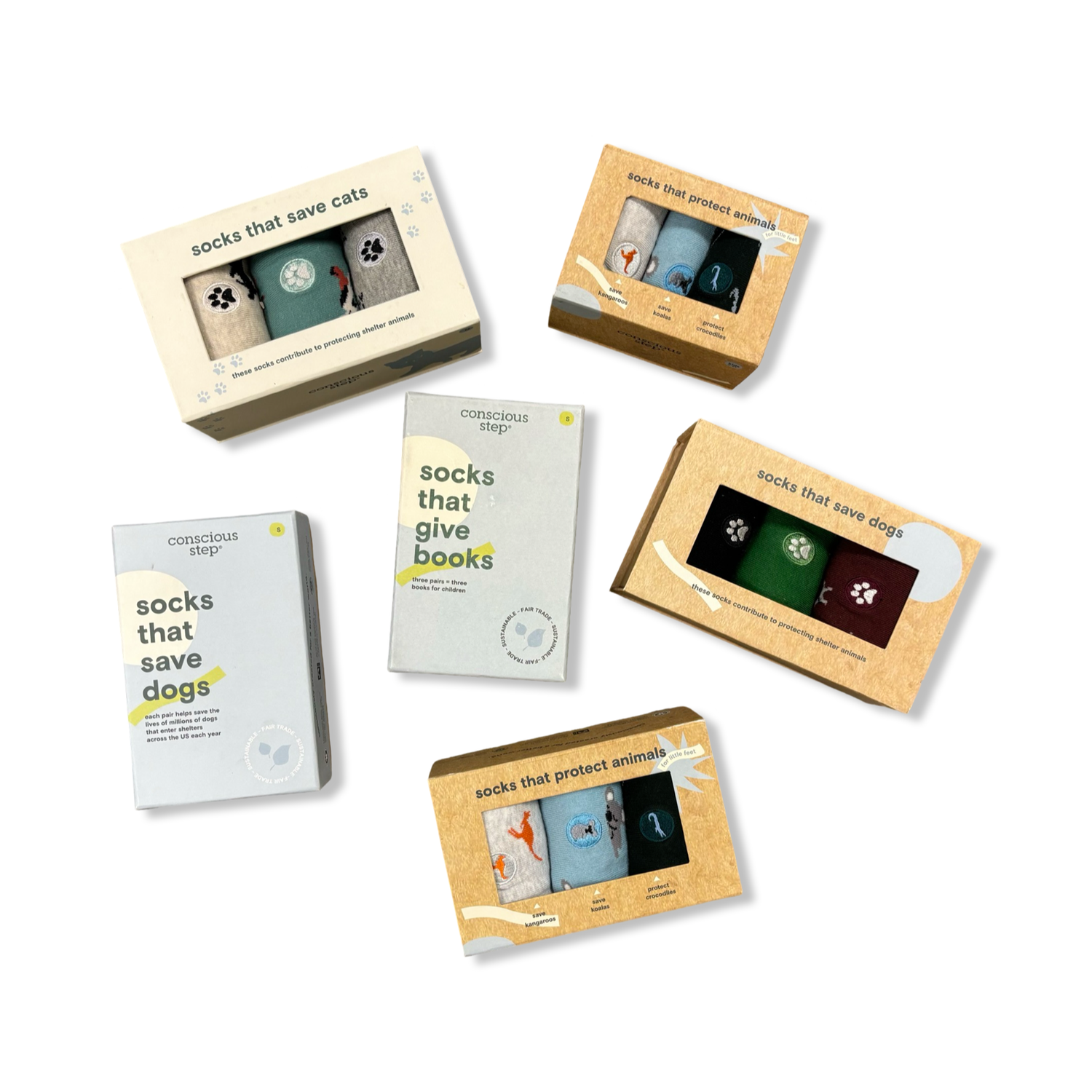 These set of socks from Conscious Step includes three socks, each benefiting a specific cause related to the theme. With each set purchased, you can support causes such as saving animals and giving books. Stay stylish and make a positive impact with Conscious Step socks.