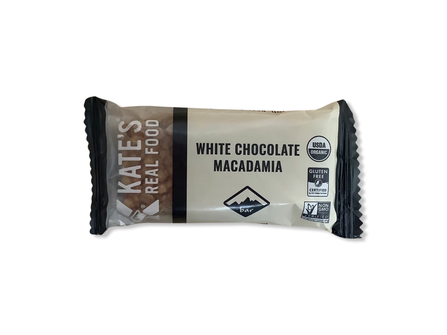 White Chocolate Macadamia - certified gluten free oats, almond butter (almonds), honey, brown rice crisps (whole grain brown rice flour, honey, sea salt) macadamia nuts, white chocolate (cocoa butter, cane sugar, whole milk powder, vanilla extract), sea salt, vanilla extract