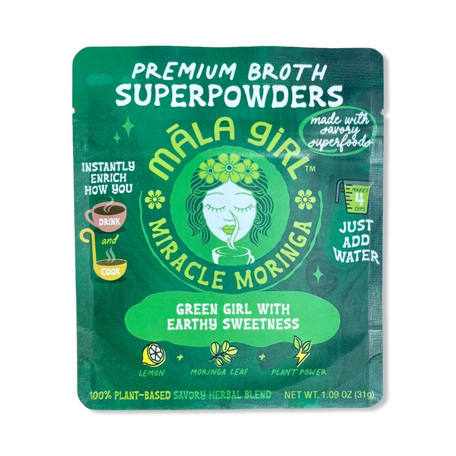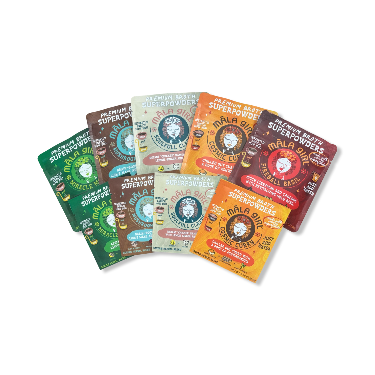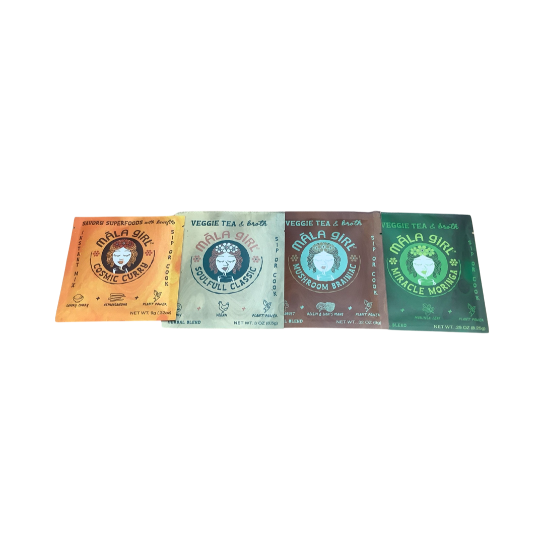All-natural, vegan, gluten-free and soy-free powder blends are crafted with 19-26 veggies, minerals and superfoods and come in 4 flavors. Boost your immunity and reduce inflammation with abundant antioxidants, vitamins and minerals. Enjoy the stress-balancing benefits of māla girl and the convenience of reducing kitchen prep time!