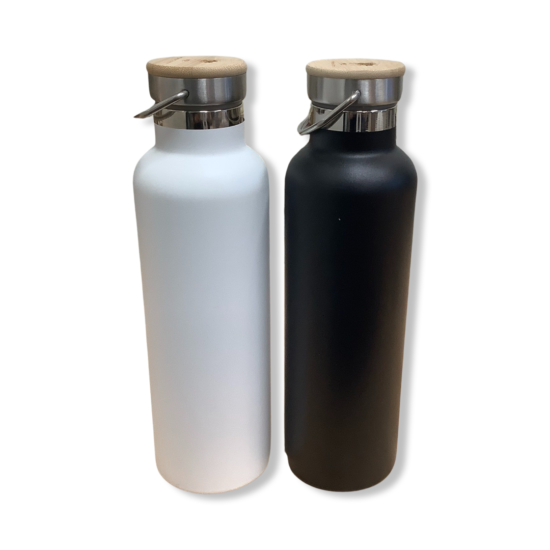This Stainless Steel Water Bottle with a bamboo lid helps us #stopplastic! It is estimated that a staggering 1,500 plastic bottles are wasted each second, but this durable bottle is designed to last a lifetime. Made with food-grade (304) double walled stainless steel and a silicone ring to provide a water seal, it won't leach chemicals, retain odors or tastes. It's perfect to use for hot or cold drinks and has a 25 oz. or 750 ml. capacity, with a 10.25" tall, 3" wide and 1.9" wide mouth opening - ideal for adding ice cubes. We recommend hand washing regularly with a coconut bottle brush, but do not submerge the bamboo parts in water.