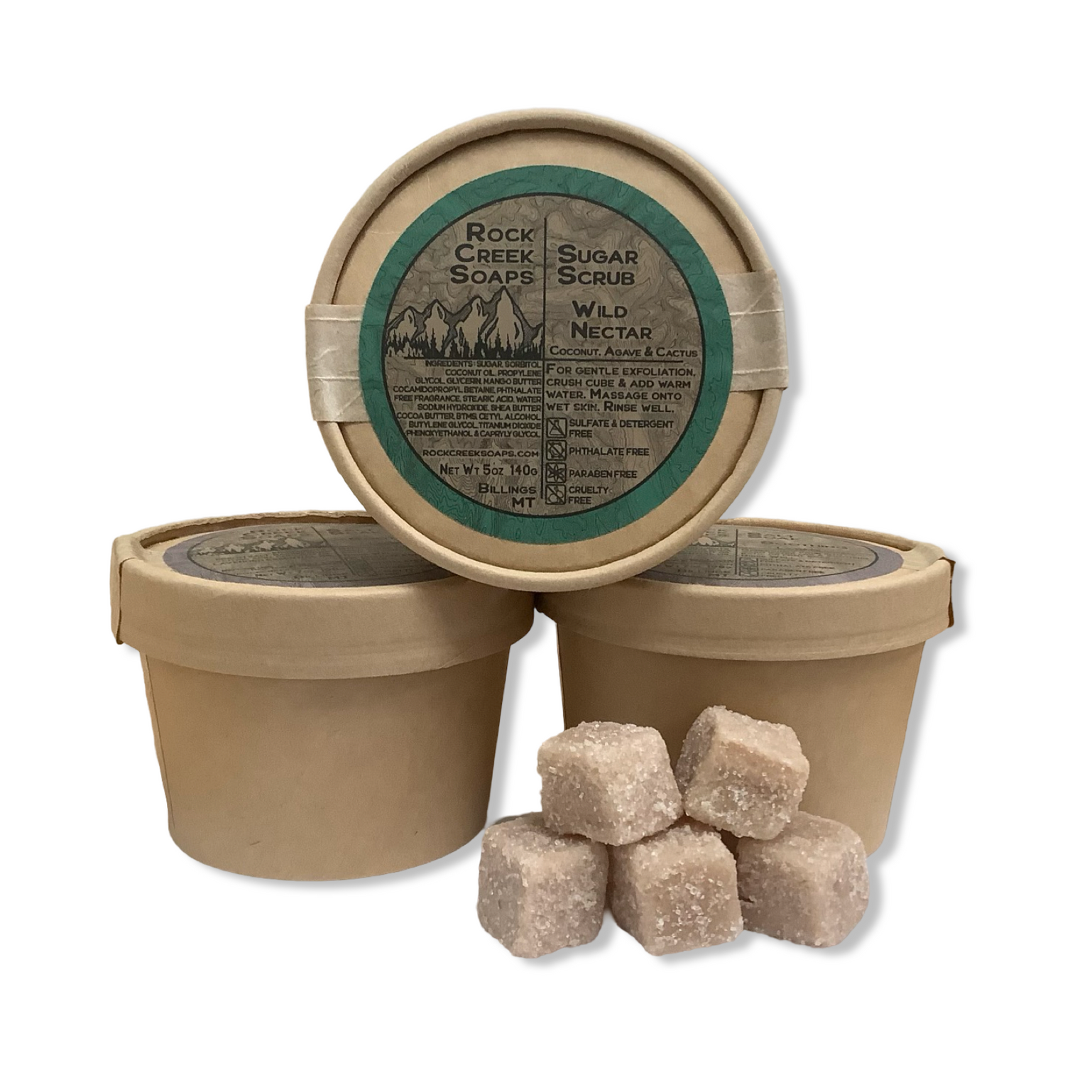 Rock Creek Soaps' Sugar Scrub Cubes provide a luxurious exfoliation experience. Each cube contains sugar scrub, so all you need to do is mix with water to activate it and enjoy the rejuvenating scrub. Get soft and supple skin in one easy step!