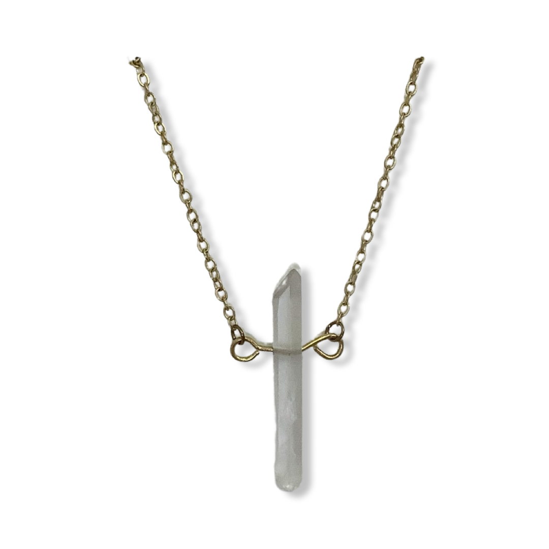 Add some natural energy to your outfit with the Willow Necklace from Commonform. Featuring a clear quartz crystal pendant on a brass chain, this 16" necklace is the perfect balance of earthy and elegant. A must-have for any crystal lover or fashionista (or both)! Each piece is expertly handmade, resulting in slight variations that make your piece truly one-of-a-kind.